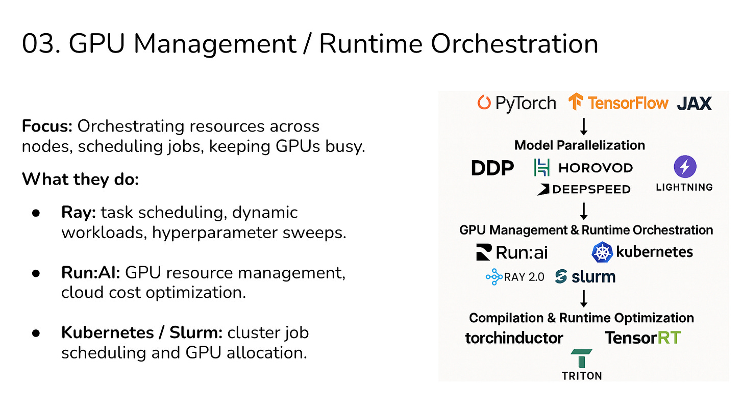 When you scale from one model training job to many, you enter orchestration. Now you’re no longer asking “is my attention kernel efficient?” instead you’re asking - why are 30% of my GPUs idle?